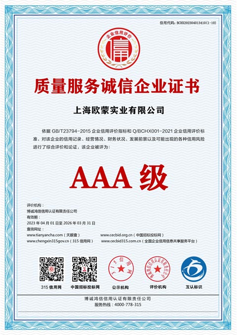 服務(wù)流程 物流配送 質(zhì)量承諾 開(kāi)票制度上海歐蒙實(shí)業(yè)有限公司 2023 Al Rights Reseved 備案號(hào):滬ICP備14034580號(hào)-16 滬公網(wǎng)安備31012002006227 本站更新文章:641 篇 今日是:2025年08月31日 星期日